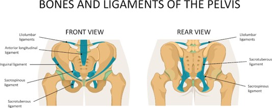 The most common ligaments that I treat in my clinic to alleviate tight hamstrings are the sacrospinous and sacrotuberous ligaments of the pelvis. See the image below.