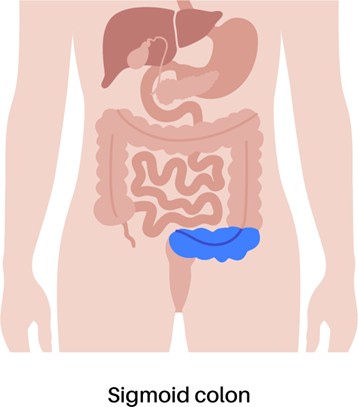 Numerous visceral restrictions can contribute to hamstring tension. A common one is a restriction of the sigmoid colon. See the diagram below.